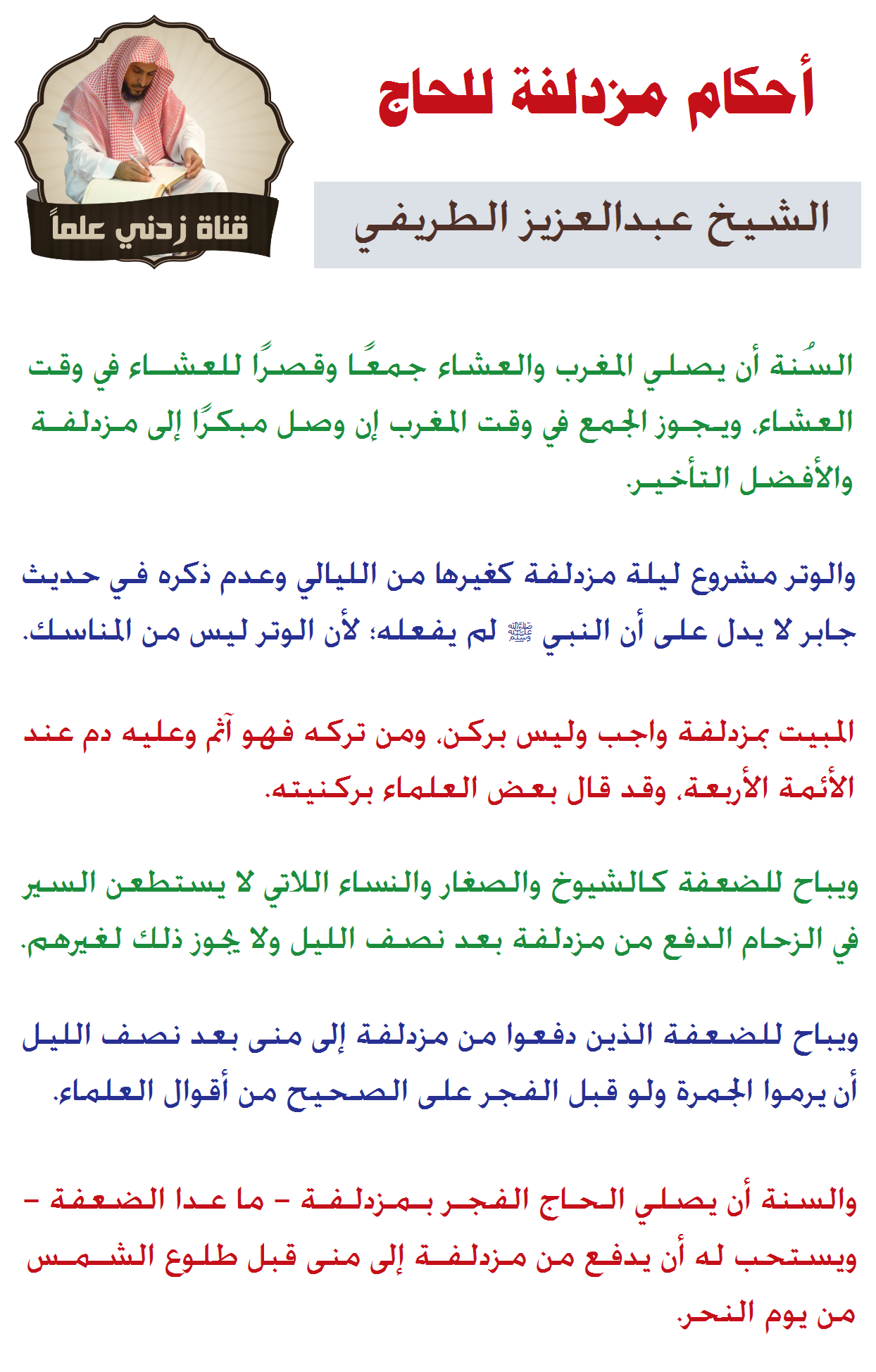قناة زدني علم ا Twitterissa أعمال الحاج في مزدلفة من كلام الشيخ عبدالعزيز الطريفي Abdulaziztarefe صفة الحج للطريفي الحج عرفة Https T Co 0pkt1dqgvi