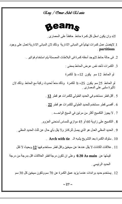 مذكرة دورة التصميم الانشائى 2017 للمهندس عمر عبد العزيز